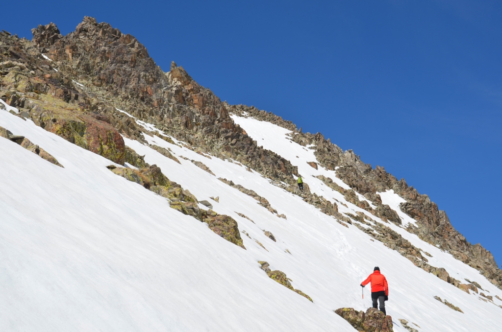 Serrato, uno de los más cercanos desde el refugio, remontando directamente una