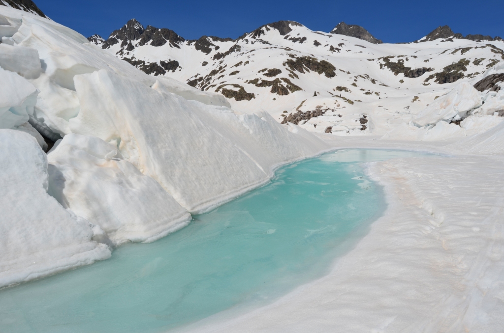 por los Ibones azules sin complicaciones con la nieve en buenas condiciones a