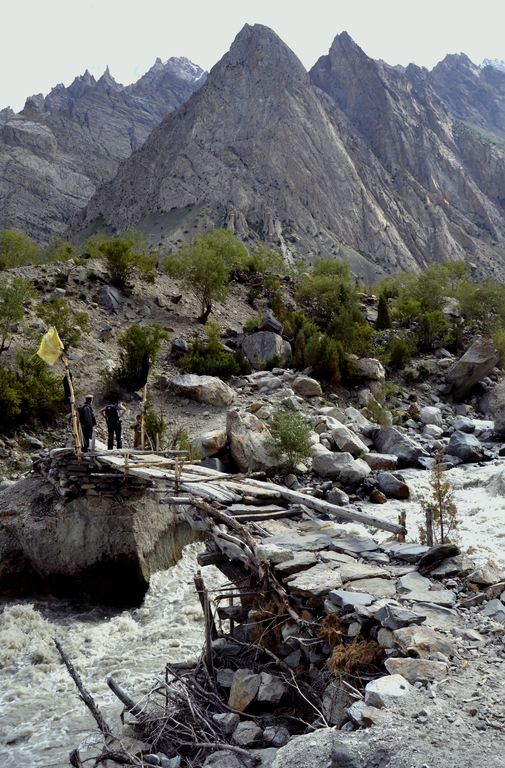 continuo de piedra y arena, donde el río Braldo se abre camino y