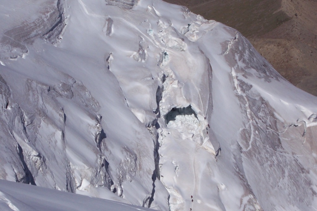 vía normal que sortea las grietas. Esta foto esta realizada desde las cercanías