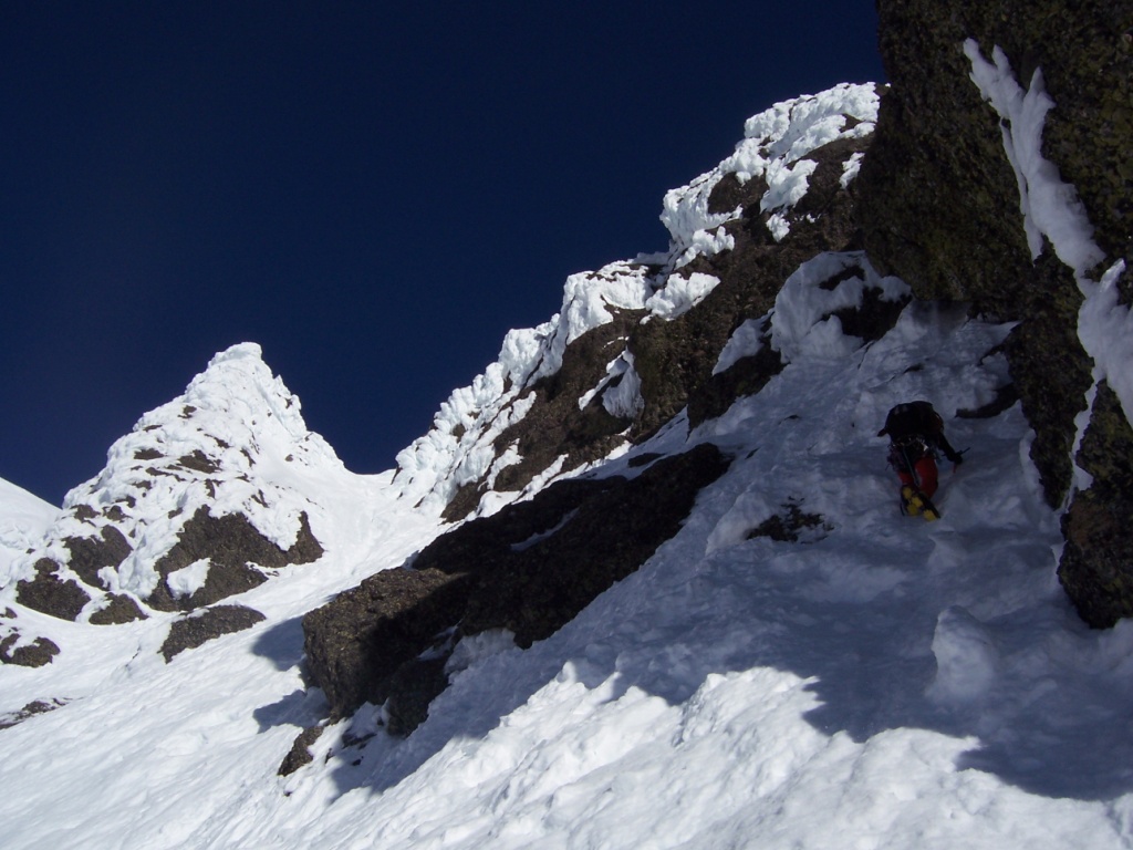 hielo en las zonas altas de la cumbre y en las rocas del pilar sur, por