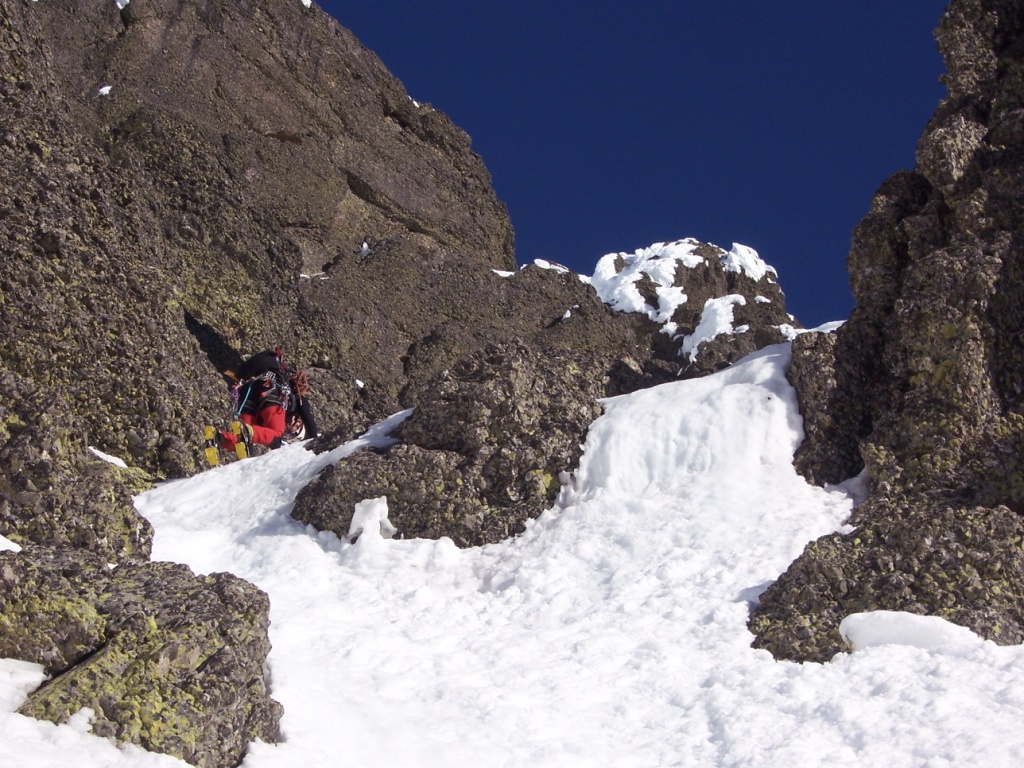 y crampones llegamos a lo más alto del corredor sin contratiempos (salvo unos