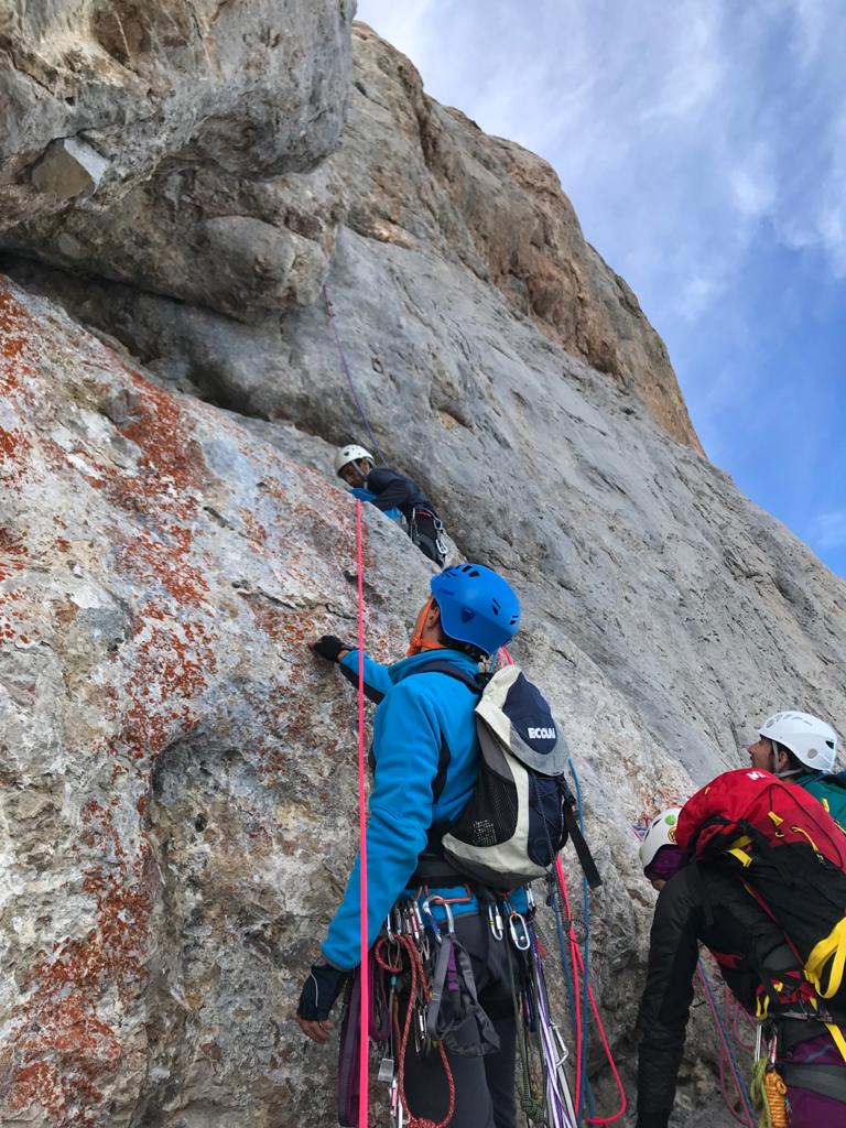 cuerdas y hierros, antes del inicio del nuevo largo.