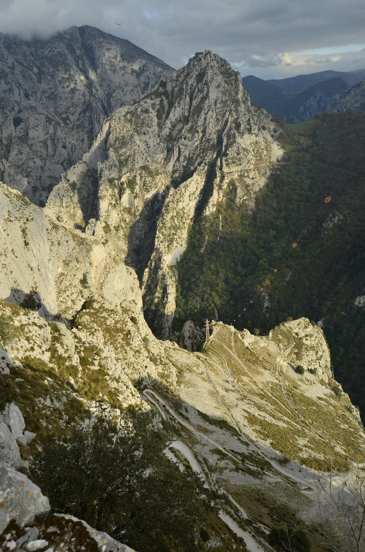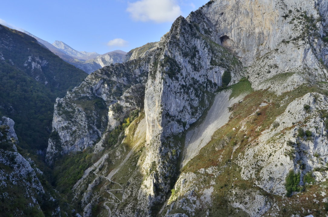 La ruta es espectacular, pudiendo contemplar unas preciosas vistas de todo el barranco de Urdón, contemplando las marcadas zetas de la ruta normal justo en frente del primer tramo de subida. Posteriormente vamos atravesando colladinas enlazadas por viras, y senderos colgados a mitad de pared, mientras cruzamos barrancos siempre con mucha atención, y todo ello entre un bosque repleto de avellanos, espinos, hayas, madroños...