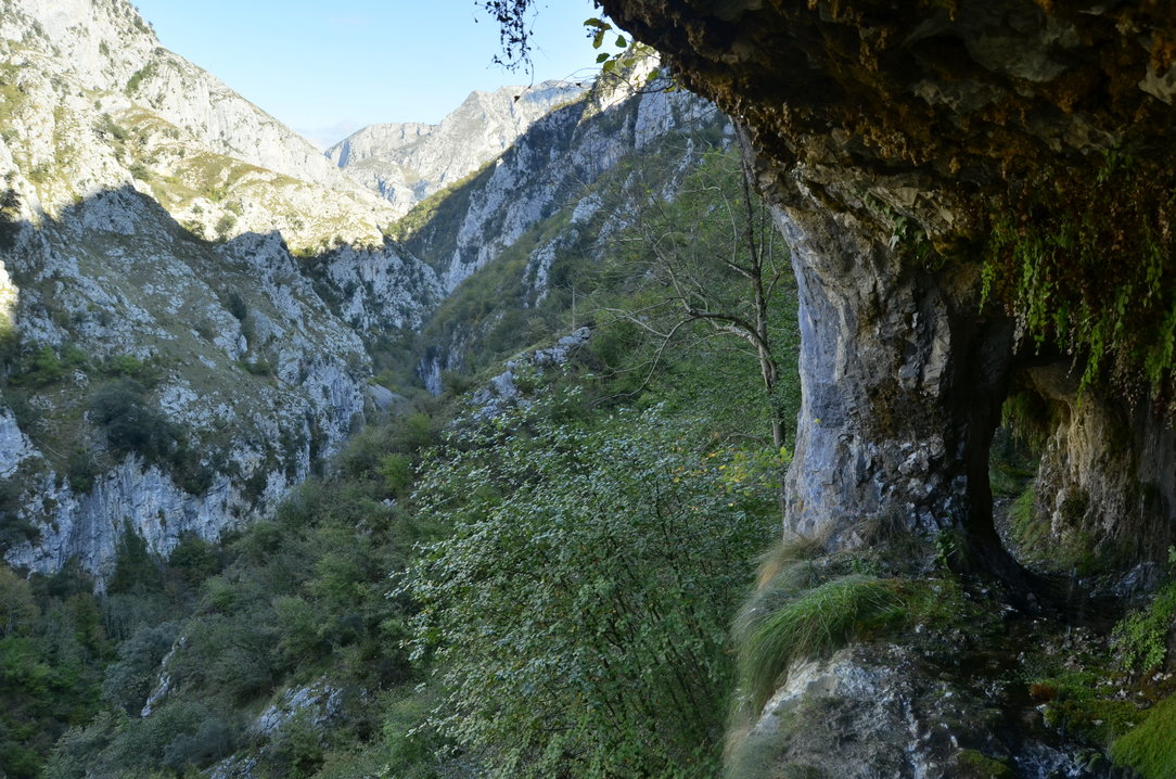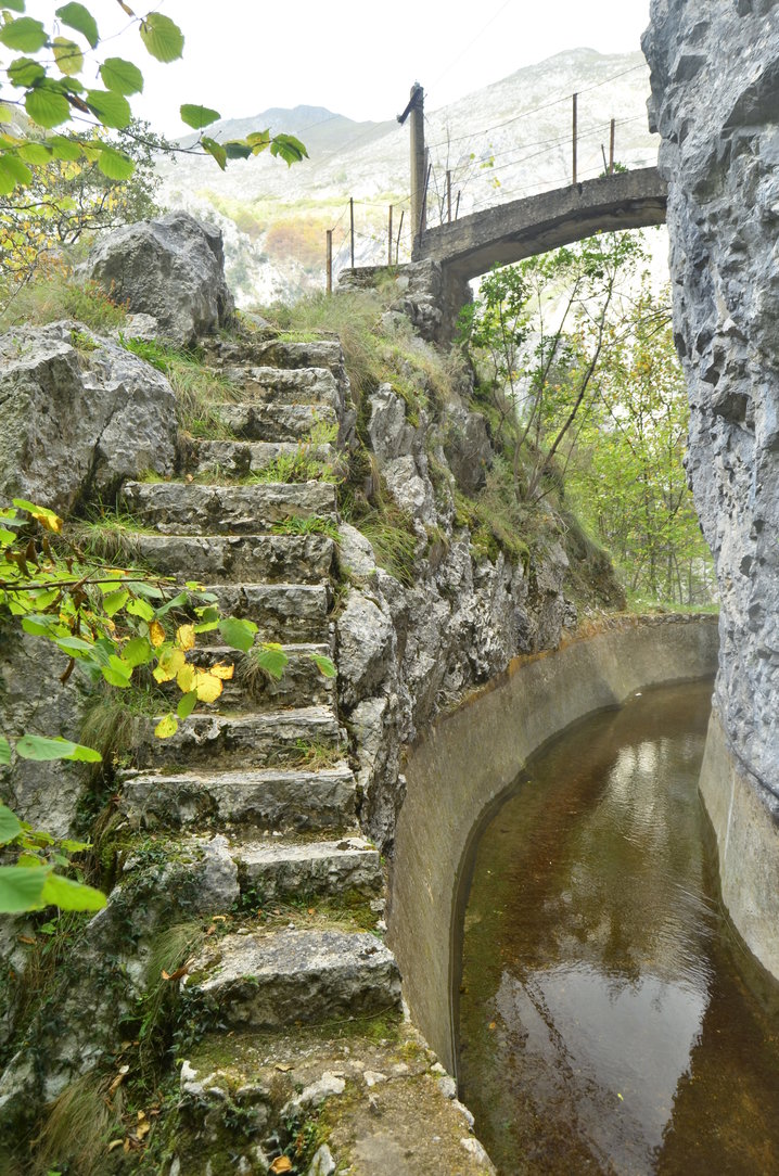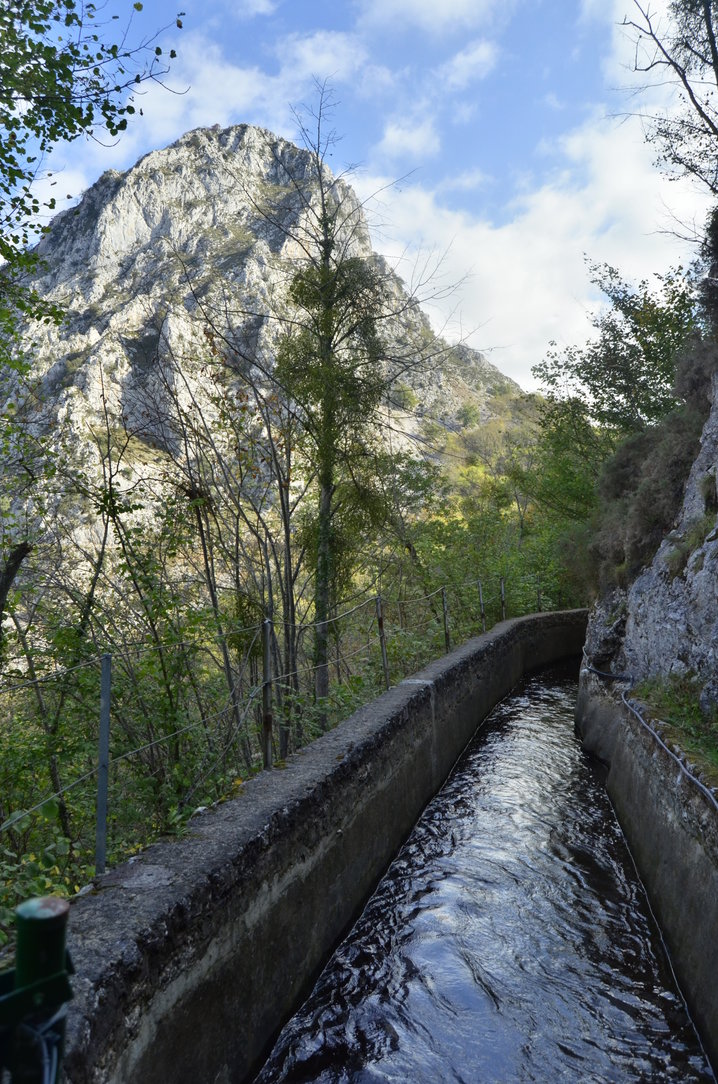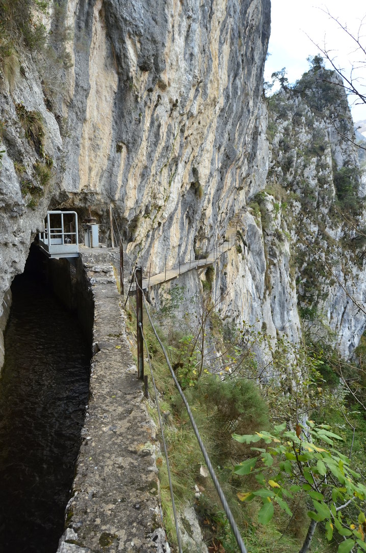 El mayor riesgo se encuentra en las viras estrechas en roca o tierra y hierba resbaladiza. En ocasiones cruzaremos estos puntos bajo ligeras duchas de agua incluso en días secos. Hay que tener en cuenta que toda la pared es norte y hay mucha humedad, vegetación y agua por todas partes. Ya hacia el final del recorrido hay una pasarela de hormigón volada sobre una pared vertical, seguida de un tramo que está horadado en la roca. En esta zona se pierde altura respecto al canal que dibuja una brecha en mitad de un gran barranco. Aún así el puente que cruzamos está a mucha altura sobre las aguas que continúan erosionando y dando forma a la orografía de Picos. Un espectáculo que nos hace preguntarnos cómo se las arreglaron en 1920 para construir esta obra de ingeniería hidráulica en semejante sitio. Desde el nacimiento del Urdón, al final del valle e inicio del canal, ya "solo" nos queda subir los últimos 400 metros de desnivel hasta Tresviso para poder tomarnos algo antes de iniciar la bajada.